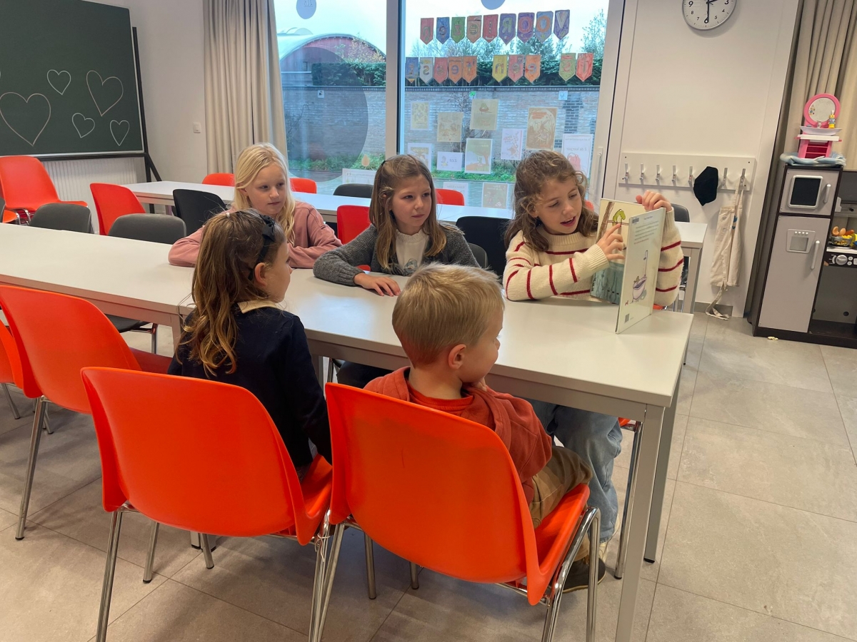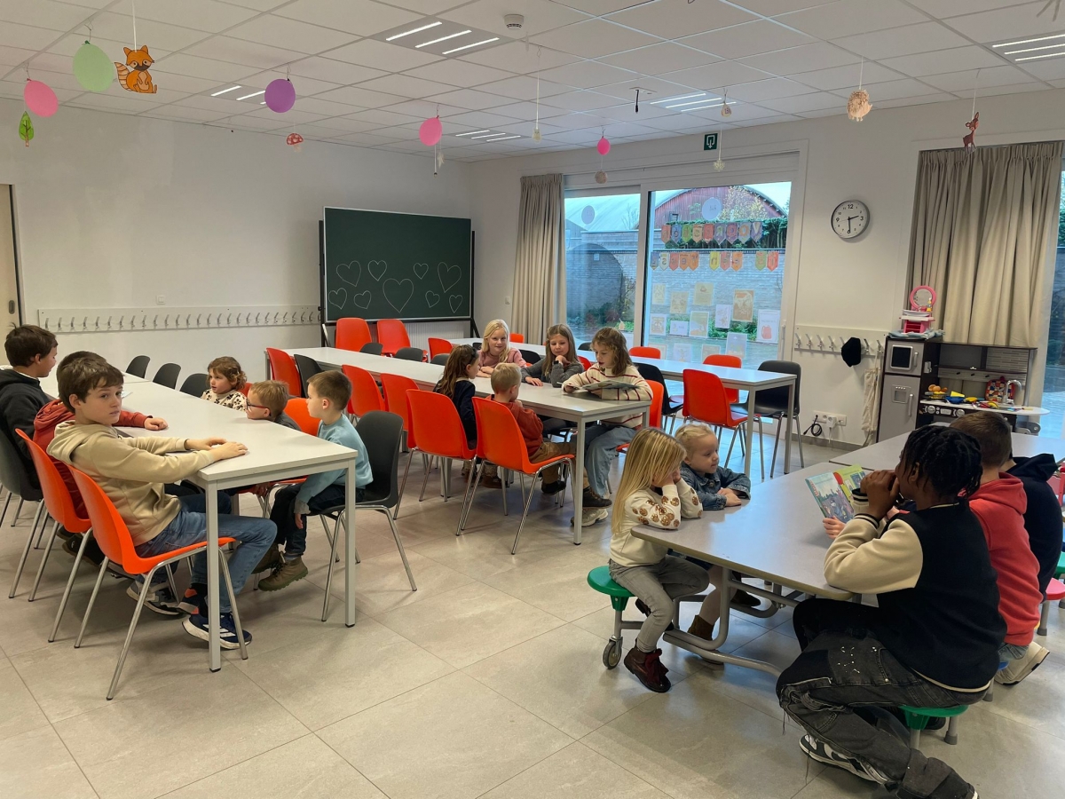 Tijdens de Voorleesweek kregen de kleuters van 2Ka bijzonder bezoek. De leerlingen van 5LC kwamen met veel enthousiasme langs om voor te lezen. Met een boek in de hand en een glimlach op het gezicht brachten ze de verhalen tot leven. Onze kleuters luisterden vol verwondering naar de avonturen, het was mooi om te zien hoe de grote en kleine kinderen samen genoten van het voorleesmoment. Dankzij deze fijne samenwerking leerden de vijfdejaars wat het betekent om zelf voorlezer te zijn, terwijl de kleuters konden proeven van nieuwe verhalen en taalplezier. Het werd een gezellige en leerrijke activiteit die we zeker willen herhalen. #warmeschool #jezelfzijn