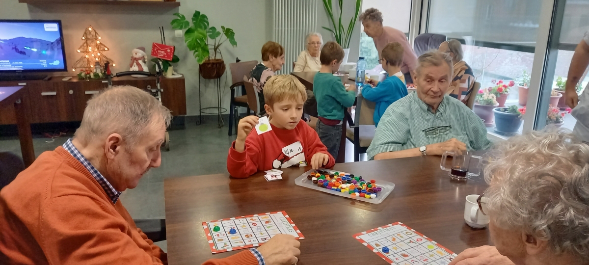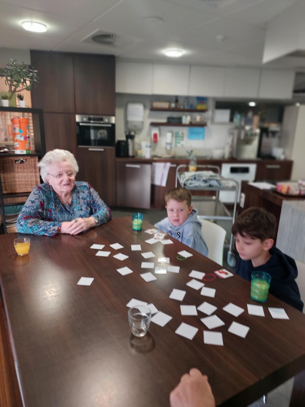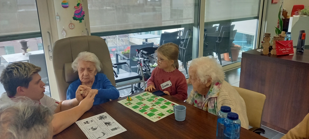 De leerlingen speelden samen met de bewoners van het rusthuis Zonnelied verschillende kerstspelletjes zoals bingo, ganzenbord en memory. In het begin waren ze wat onwennig maar al snel ontstonden er warme contacten. Sommige leerlingen voelden zich meteen verbonden met de bewoners en ontpopten zich zelfs tot enthousiaste spelleiders. Het werd een gezellige en hartverwarmende namiddag voor iedereen. #warmeschool #zorgdragen